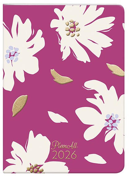 PLANALL Zsebnaptár PLANALL B/6 heti álló fehér lapos aranyozott Fall 2026 (23_09725)