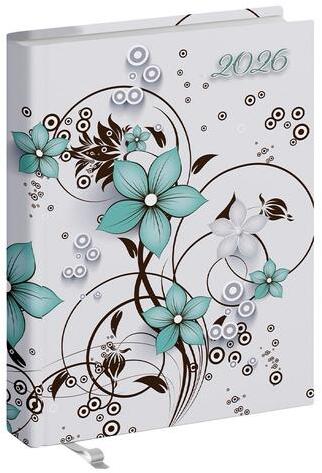 Realsystem Zsebnaptár REALSYSTEM 2 Day B/6 kétnapos álló fehér lapos Virágminta 2026 (5441-65) - robbitairodaszer