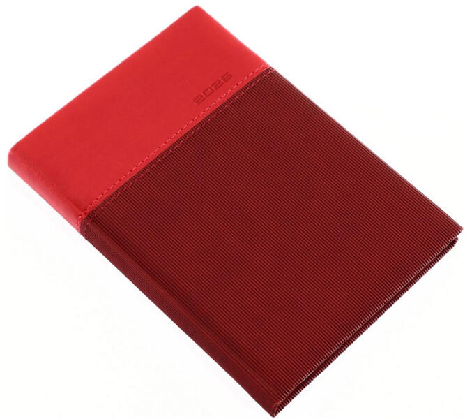 Fehér papíros, cérnafűzött, B/6 heti beosztású, 144 oldalas, sarokperforált, jelzőszalagot tartalmaz.