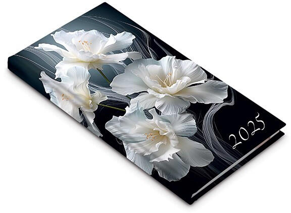Fehér papíros, cérnafűzött, heti beosztású zsebnaptár, 144 oldalas, sarokperforált.