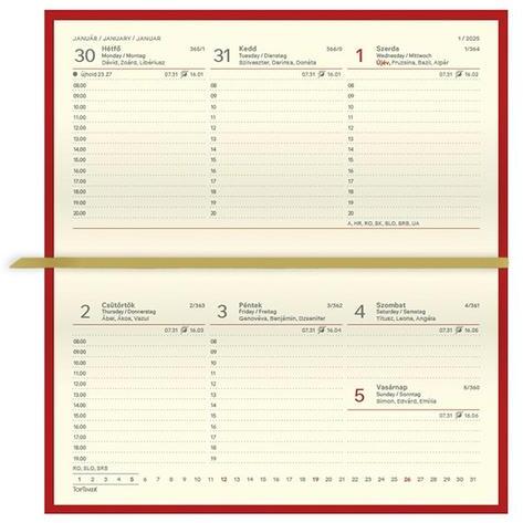 Prégelt, bőrhatású, hőre színeződő műbőr bevonóval készült naptár, díszkerettel és elegáns évszámmal. Chamois (krémszínű) tömbös naptár, színes oromszegővel, jelzőszalaggal és sarokperforációval. Vaknyomással és lézergravírozással emblémázható