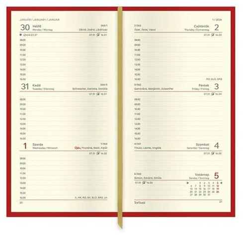 Prégelt, bőrhatású, hőre színeződő műbőr bevonóval készült naptár, díszkerettel és elegáns évszámmal. Chamois (krémszínű) tömbös naptár, színes oromszegővel, jelzőszalaggal és sarokperforációval. Vaknyomással és lézergravírozással emblémázható